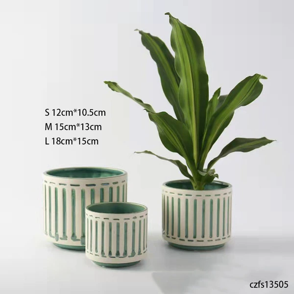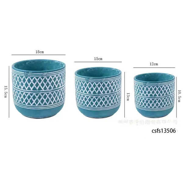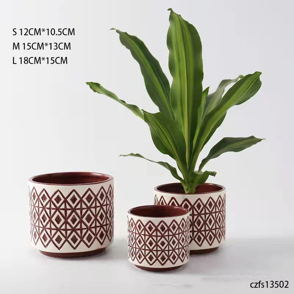 czfs1350 series ceramic planter pot design with Geometric Pattern ,3pcs in 1set .they are have the features of durable,corrosion resistance,not easy deformation.they can be uses individual or combination.modern &simple desgin is suitable for home decorative, garden,office,coffeshop ect.