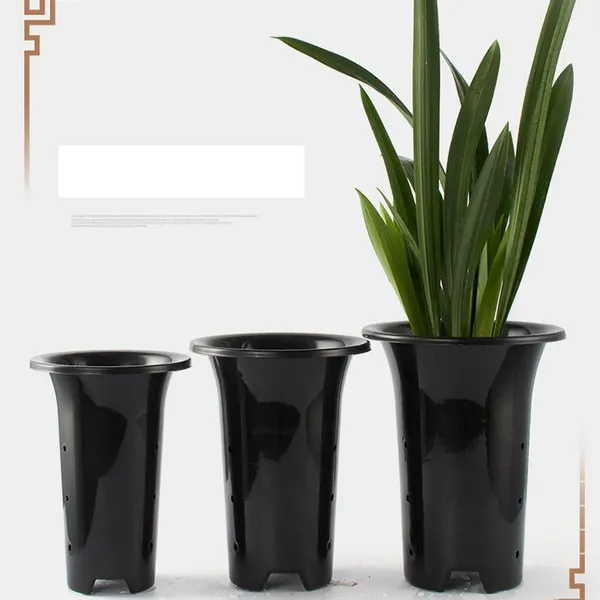 Orchid plastic pots with breathing & drainage holes at bottom & sides,loudspeaker design design allow handling、 stack、decorate easy.cymbidium pots are deep & tall enough to the roots 2years growing.you