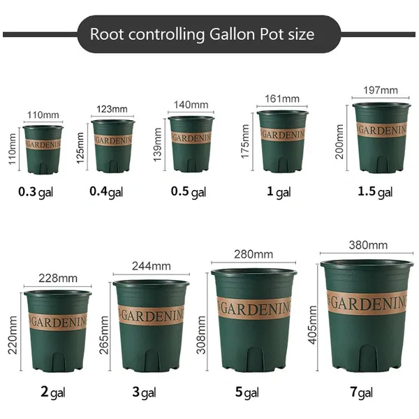 Our gardening gallon plant pots has features of controlling main roots and growing more fine roots,it is benefit to potted plants growing,improve the survival rate of the plants. our gallon nursery pots have volume selection of 0.3 gallon、0.4 gallon、0.5 gallon、1 gallon、1.5 gallon、2 gallon、3 gallon、5 gallon、7 gallon.