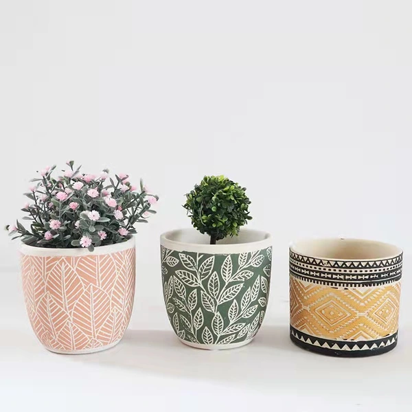 XL series ceramic planter pot design with painted pattern ,they are have the features of durable,corrosion resistance,not easy deformation.they can be uses individual or combination.modern &simple desgin is suitable for home decorative, garden,office,coffeshop ect.