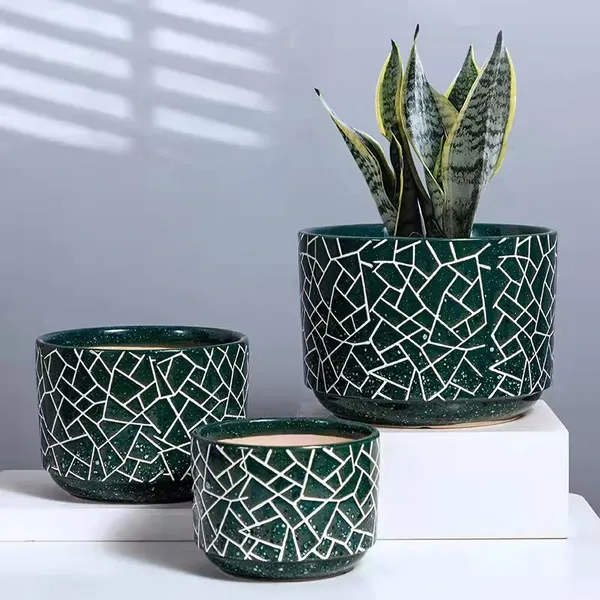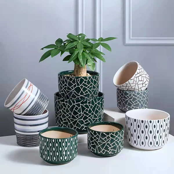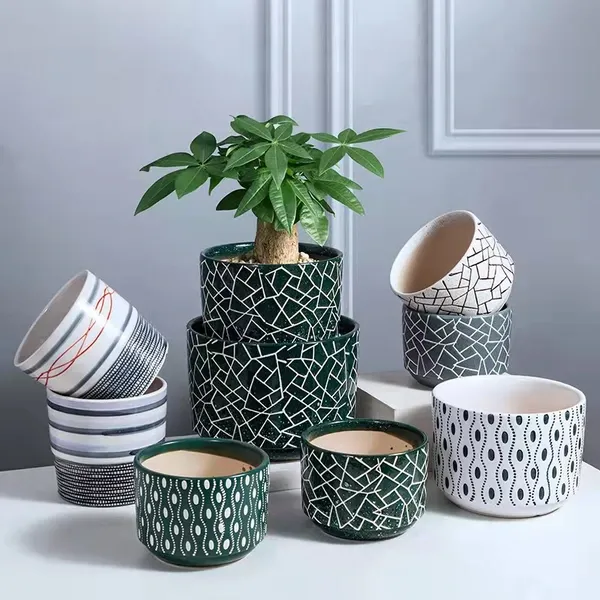 HJH series ceramic planter pot design with Geometric Pattern ,they are have the features of durable,corrosion resistance,not easy deformation.they can be uses individual or combination.modern &simple desgin is suitable for home decorative, garden,office,coffeshop ect.